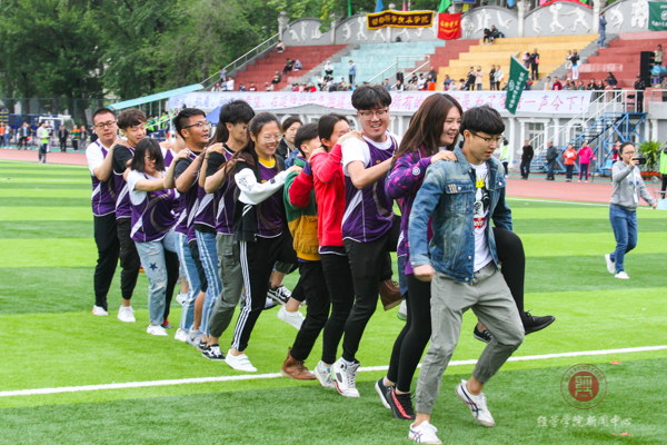 今天的第一个项目是抱腿跑相比其他运动项目气氛是轻松的,彼此间的信任与友谊冲淡了紧张的情绪。随着裁判员一声令下,整齐的口号和步伐响彻了整个操场,队员间的信任成为了整支队伍最大的动力。最终经管学院在比赛中取得了第二名的可喜成绩。