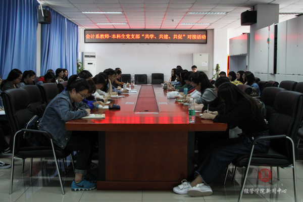 2018年4月24日,在经管楼401会议室举行了经管学院会计系教师-本科生党支部“共学、共建、共促”对接活动。出席本次活动的老师有经管学院党总支委员、组织员、会计系教师党支部书记白华,会计系本科生党支部书记邬津以及会计系本科生党支部的学生党员和积极分子。