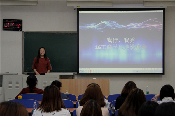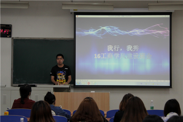 2018年5月17日经管学院2016级工商管理专业在教B-107召开了“我行,我秀”为题的学风建设主题班会,出席本次班会的有工商管理系主任李萍老师、16级辅导员乔多老师。