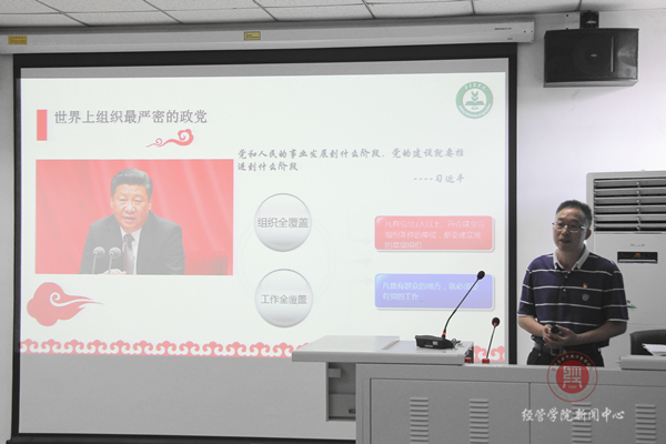 时值建党九十七周年来临之际,为全面学习、认知党的成长历程,威廉希尔中文于6月28日组织召开中心组扩大学习会议,学校纪委书记李伟书同志为我院师生党员积极分子作了题为《厉害了,我的党》专题党课,学院班子成员,基层党支部书记,工商教师党支部全体党员、非党员青年教师,会计本科生党支部在校生党员和积极分子参加了此次学习,学习会议由党总支书记胡宝贵主持。