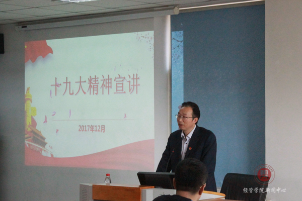 12月13日12:10,校纪委书记李伟书走进经管学院会计系本科生党支部向师生宣讲党的十九大精神。经管学院班子成员,校纪监审党支部党员,经管学院会计系本科生党支部党员、积极分子、共青团员、群众参加了此次宣讲。宣讲由会计系本科生党支部书记主持。