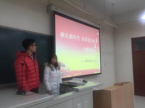 为加深学习,学院团委开展了“与信仰对话:青年的楷模,学习的榜样”、“改革开放四十载,全民学习十九大”主题活动。以ppt的形式给同学们解读了十九大中习近平总书记关于《决胜全面建成小康社会夺取新时代中国特色社会主义伟大胜利》报告的节选,并且再一次观看十九大视频。同学们深切感受到了近五年来祖国发生的巨大变化和国家各项事业取得的重大成就,增强了同学们的爱国心、自豪感。通过系列学习活动,进一步深化了广大团员青年对新党章的认识,增强了每位团员青年的先进性和光荣感。坚持团员学习上、工作上和生活上的先进作风,带领周围的同学们积极向上。