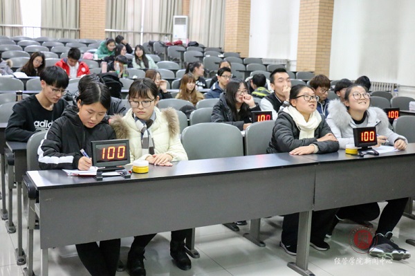 第二个环节为抽签答题,开启了淘汰的制度。比赛进行的非常顺利,由于前期的认真准备,同学们对于题目都很有把握。最后10组队伍晋级,分别是:15级农经1班、15级农经2班、15级国贸1班、16级农经2班、16级国贸1班、16级会计2班、17级工商2班、17级农经1班、17级市营1班、17级投资2班。