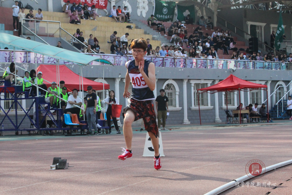 此时的田径场上有条不紊地开展着激动人心的比赛。男子800米决赛在阵阵欢呼声中开始了,居海升同学站在起跑线上,枪声一响,只见他双脚用力往后一蹬,身体如同利箭一般飞速地冲了出去,双眼紧盯前方,奋力地冲刺,全力冲向了终点。最终为经管学院争得了第三名的优异成绩。