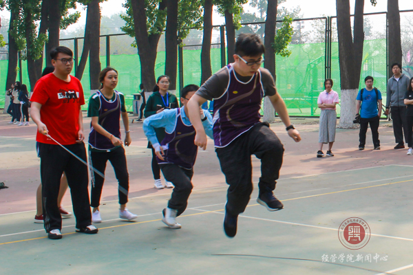 2018年4月20日上午8:30,伴着暖暖的春风运动会准时开始,此时的校园到处生机勃勃,充满着青春的味道。网球场内正在进行着激烈的8字跳比赛。经管学院一根长长的跳绳,十个斗志昂扬的面庞,十双紧紧锁定上下翻涌的跳绳的眼睛,随着跳绳而一个接一个的跳跃,队员们气喘也不停歇。最终,在经管的队员们不懈努力之下,取得了第三名的好成绩。