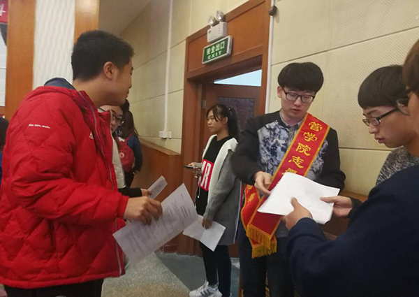 9点25分许,志愿者们自觉在礼堂门前集合完毕,辅导员老师对今日工作内容和注意事项进行布置后,志愿者干劲十足的做起了准备工作。尽管天气很冷、工作很累,但大家还是自始至终地对志愿工作保持着十分积极的态度。