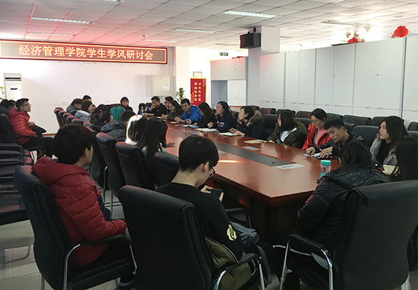 2017年11月28日,威廉希尔中文在经管楼401召开学生学风研讨会,就学生课堂学风进行座谈、讨论。会议由经管学院党总支副书记、学生工作副院长张晓凤主持,各年级辅导员和各班学生代表参加了会议。
