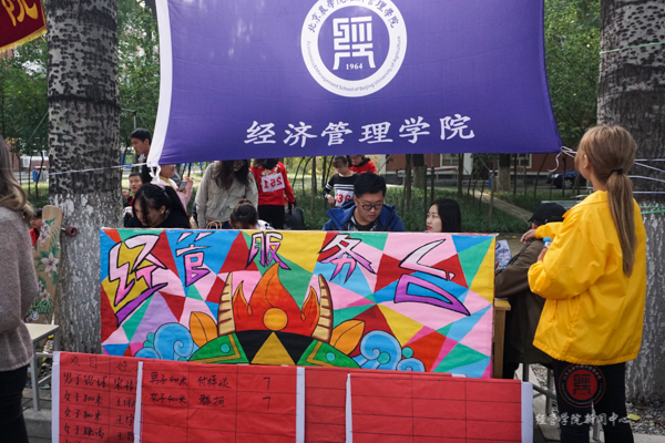 他们不求得到什么回报,有的在照顾比赛后气喘吁吁的运动员们,有的则是在帮裁判搬运着道具。尽管天气寒冷,他们的脸上满是汗水。他们上一刻还坐在地上喘着粗气,下一秒便微笑着去帮助即将上场的比赛者。他们这般不求回报的付出,仅仅只是为了让疾驰在赛场上的经管运动健儿们,感觉到经管学院与他们同在,不管比赛结果怎样,经管学院永远支持他们。