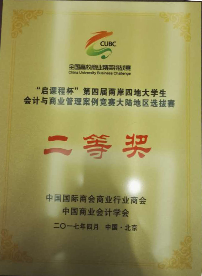 2014级会计学专业的10名同学在经过相当一段长时间的准备和努力之后,在比赛中取得了二等奖的好成绩,希望在以后的学习生活中,同学们也能不仅仅局限于书本上的知识,多参加一些课外活动,在实践中成长,开拓视野,为学校的风采增添一份自己的光芒!