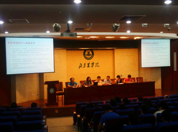 在大会互动环节,由13级班主任肖红波老师组织9位优秀毕业生从考本校或外校研究生、事业单位就业、考公务员、企业就业等角度为学弟学妹们分享真实而生动的体会和经验。并各位学生代表还对现场提问做了详细和精彩解答,气氛十分活跃。随后由赵海燕和江晶老师为13级优秀毕业生代表颁奖。