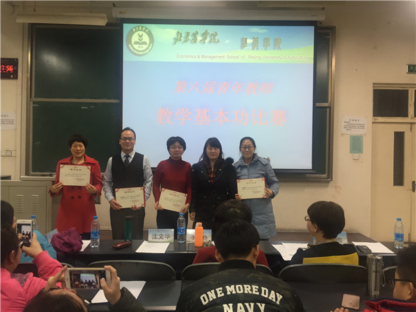 参加本次比赛的刘笑冰、李婷婷、刘亚钊、白艳娟、夏龙、倪冬梅、曹暕、杜孝森、江晶、黄映辉、杨博琼共11位教师分别从农产品市场营销(双语)、市场定位、微观经济学中的需求弹性、个股期权、计量经济学:生存分析、妥投率、耕地保护政策与法规、公允价值计量与会计稳健性、人力资源管理导论、都市农业的多功能性、企业的性质等专业课程内容进行了精彩的展示,充分展现了我院青年教师的教学功底和精心准备比赛的投入。本次比赛评出一等奖1名,二等奖2名,三等奖3名,优秀奖5名。