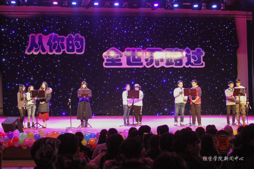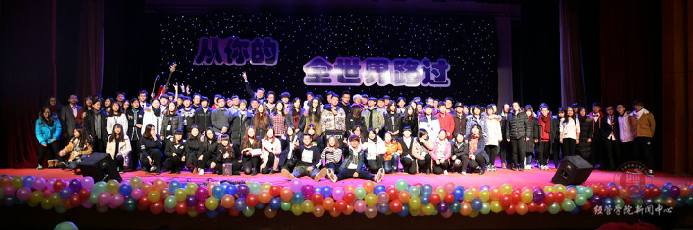 经管学院以“从你的全世界路过”为主题的2016迎新晚会于 11月30日晚6:30在礼堂举行。本次迎新晚会由经管院学生会举办。出席本次晚会的有党总支书记胡宝贵老师、主管学生工作副院长赵金芳老师、辅导员古丽老师、任娇老师、16级工商班主任周云老师、各二级学院学生会主席、16级各班班助和16级全体学生,还有来自其他学院的老师和同学们,此外还邀请到了晚会赞助商、北京联合大学、首都体育大学学生代表,现场座无虚席。