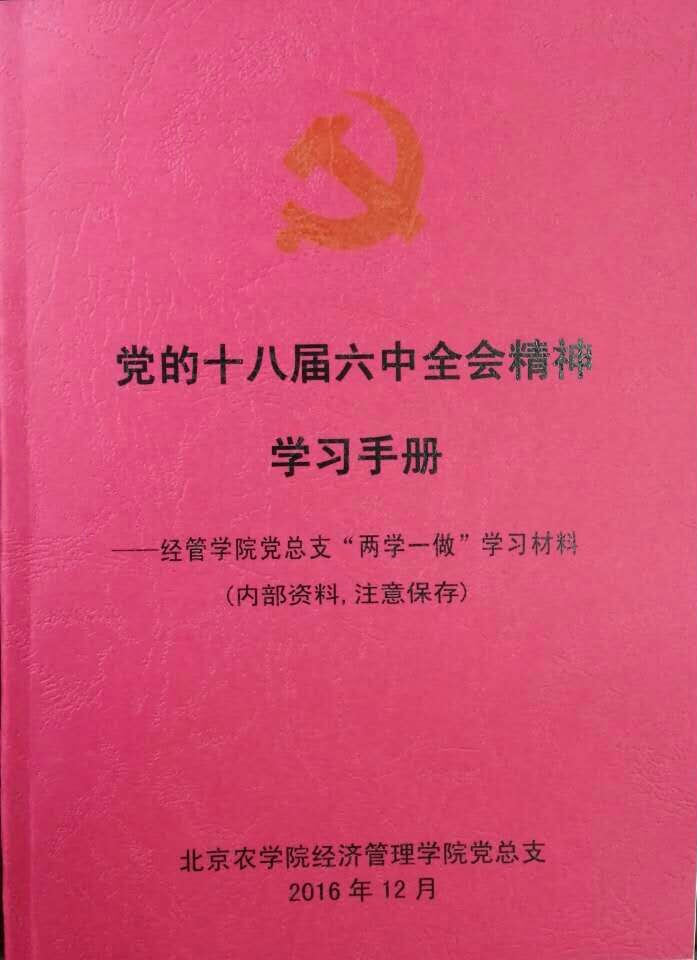 第二部分全体与会人员集中学习了《党的十八届六中全会精神学习手册》,学院党总支为每位党员提前印制了学习材料。同时,此次会议中解读了《十八届六中全会公报》,提出了以习近平同志为核心的党中央领导,坚持“1个根本遵循”———党章;同时加强和规范党内政治生活,加强党内监督;坚持党的政治路线、思想路线、组织路线、群众路线的4大基本路线;在对党的政治工作中,应着力增强党的4个“自我”能力;在坚持中国特色社会主义的道路上,坚定4个“自信”;要求全党同志要牢固树立政治意识、大局意识、核心意识、看齐意识。以上学习内容得到了与会党员们的一致认可和赞同。