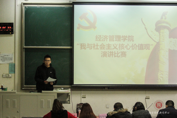 11月28日下午18:00,在教B201举办了经管学院“我与社会主义核心价值观”演讲比赛。来自经管学院15级和16级的学生积极参加本次比赛。这次比赛的评委有学生处朱焰浩老师、文法学院李向楠老师以及经管学院1辅导员闻海洋老师、古丽老师、任娇老师。