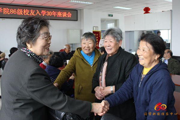 老校友们的脸上露出不能用语言表达的笑容,仿佛此时是他们最幸福的时刻。老校友们都很热情,亲切的聊起了当年学校里的事。