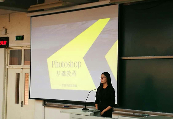 会议伊始,宣传部长张弛为大家介绍Photoshop的基础教程,主要讲解软件的背景、常用工具以及如何利用Photoshop处理图片和海报。