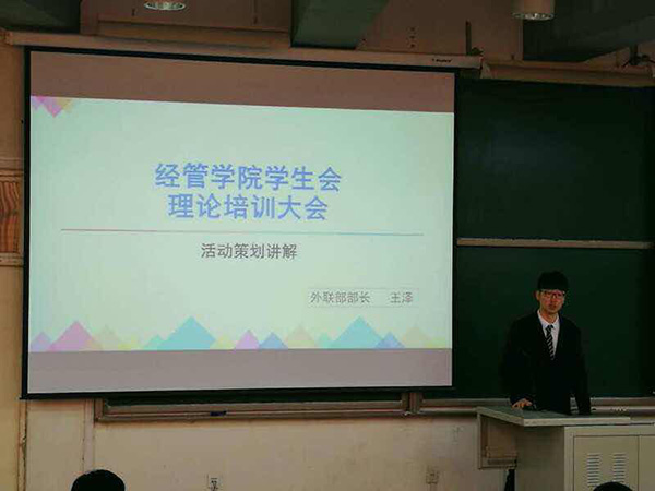 外联部长王泽就活动策划进行讲解。他提出一场活动成败的关键在于撰写活动策划的态度,并特别强调策划内容、字体和格式要求,为各部门日后能够顺利开展各项活动打好基础。