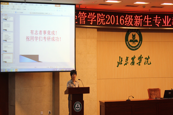 会议伊始,胡宝贵老师从招生情况,学院发展历史和现状三个方面进行了详细的介绍,其次还对新生提出了四点期望:主动适应、活在当下、规划未来、快乐和谐。之后,赵连静老师针对人才培养与教学管理方面进行了多方面的讲解,分别从培养进程,教学体系,教学管理服务三个方面展开,并向新生们提出了几点希望。刘芳老师向新生们介绍了我校的考研考点要求,还向新生们介绍了诺森比亚大学和我校的合作项目。
