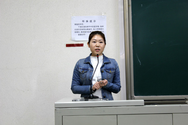 办公室李璐璐同学代表新干事进行发言。她表示能够加入学生会非常的荣幸,将时刻遵守学生会规章制度,谨记学长学姐教诲,认真做好每件事。她希望能在学生会工作中丰富课余生活,提升自己的能力,为学生会贡献力量。