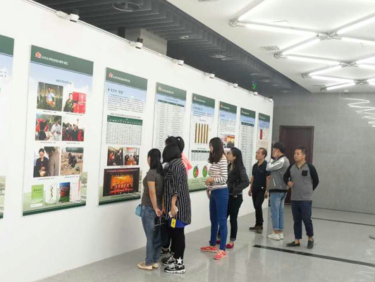 经管学院的研究生们集体来到图书馆一层大厅,参观北京农学院建校60周年展览。