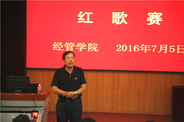 比赛最后,由胡宝贵书记讲话。胡书记说到,此次红歌赛的成功举办有赖于各党支部书记的积极配合和各党员同志的积极参与。这次红歌赛是近期“两学一做”教育活动中掀起的小高潮,进一步激发了广大党员的爱国热情和爱党情怀,展现了经管学院积极向上的精神面貌。
