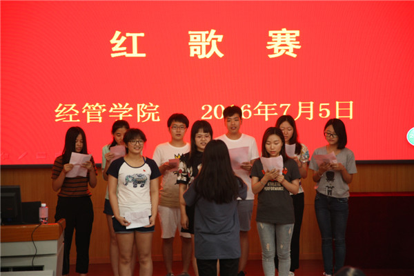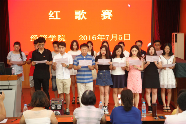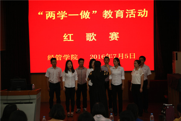 “共产党辛劳为民族,共产党他一心救中国……”7月5日下午两点,为丰富“两学一做”教育活动形式,提高党员学习教育活动的积极性,增强学院各党支部的凝聚力,经管学院开展的“两学一做”教育活动红歌赛正式拉开帷幕。
