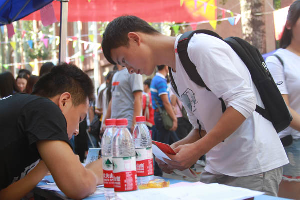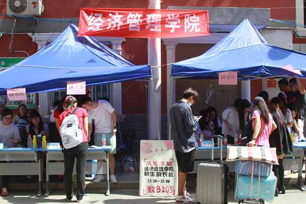 早上不到8点,新生们就陆陆续续地来到了报到处。穿着统一的志愿者们、辛勤准备的班助们和经管学院的领导们也早早来到了报到处,迎接新生们的到来。不管是志愿者们热情的服务,还是班助们的悉心帮助都给家长们留下了深刻的印象。