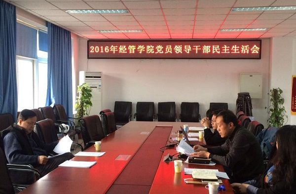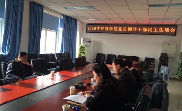 1月20日,2016年经管学院党员领导干部民主生活会在经管楼401召开,参加会议的有经管学院党总支书记胡宝贵、院长李华、副院长刘芳、赵连静、赵金芳,副校长郑一淳出席指导会议。此次会议围绕践行“三严三实”主题,深入查找领导班子和个人存在的突出问题,深刻分析问题产生的原因,认真开展批评与自我批评,总结经验,明确方向,推进经管学院科学稳定发展。