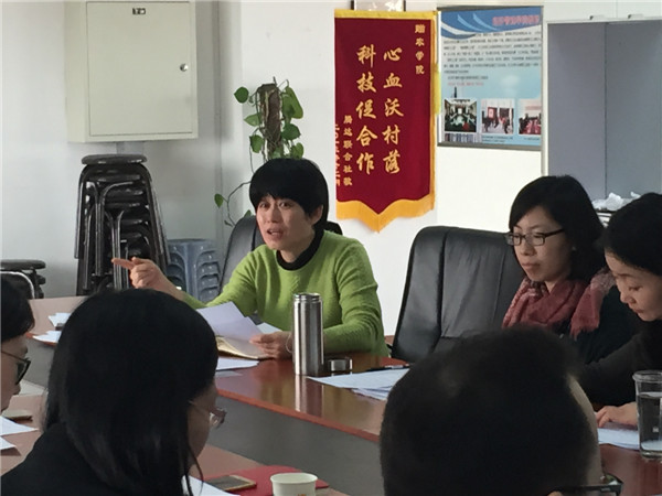 新的学期,新的开始,经管学院老师又有了新的挑战,如何提高学生们的四级成绩,是每年教学和学生工作的难点。为此,经管学院副院长赵金芳组织全体2014级英语任课教师、各辅导员老师、班主任老师,从提高学生早读出勤率、维持良好课堂纪律等方面,对如何能够有效地提升2014级学生的英语学习成绩进行了全面讨论。