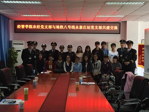 为了积极响应关于推进先进基层党组织建设的工作要求,进一步激发党组织的活力,增强学生党员服务意识和责任意识,同时使同学们更加了解地铁相关知识和法律法规,便捷文明乘车,安全出行,2016年4月13日,经管学院农经学生党支部与北京地铁运营三分公司永泰庄站区合作开展以“地铁课堂进校园”为主题的公益宣传共建活动。