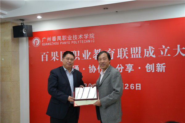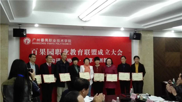 由广州番禺职业技术学院与深圳市百果园实业发展有限公司牵头的百果园职业教育联盟于12月26日正式成立。该联盟成员还包括深圳市连锁经营协会1家行业协会,北京农学院经管学院、武汉商学院、台湾树德科技大学3家本科院校的学院,金华职业技术学院、顺德职业技术学院、中山职业技术学院、河源职业技术学院、广东科贸职业技术学院、东莞职业技术学院、马鞍山职业技术学院7家高职院校,广州市商贸职业学校、东莞市商业学校2家中职学校共15家单位。我院党总支书记胡宝贵老师、副院长赵金芳老师、工商管理专业周云老师参加成立大会。