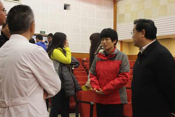 献血体检后,有一些不符合献血标准的同学依旧留在服务台,为献血的同伴加油,同时送上关怀与问候,让爱心温暖着每一位献血者。一股股青春热血,一颗颗爱心满怀,使得每个人都为此次活动中献血的同学感到光荣和自豪。