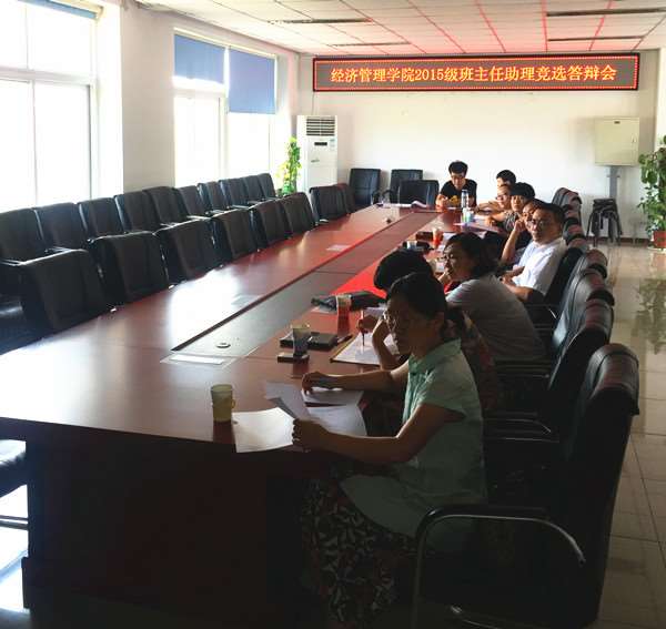 为加强经管学院学生的思想政治教育及日常管理工作,保证迎接2015级新生工作顺利开展,结合实际工作之需,7月13日下午,威廉希尔中文组织召开2015级新生班主任助理竞选答辩会。经管学院副院长赵金芳老师、2015级新生班主任胡宝贵、黄映晖、刘亚钊、戴晓娟老师、辅导员骆金娜、乔多、闻海洋老师作为评委参加了本次竞选答辩会。