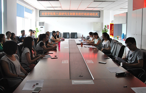 6月17日下午,经管学院第六届研究生创新农经行动启动仪式在经管楼401举行。参加此次会议的有经管学院副院长刘芳老师、研究生秘书任娇老师以及2013、2014级研究生。会议由刘芳老师主持。