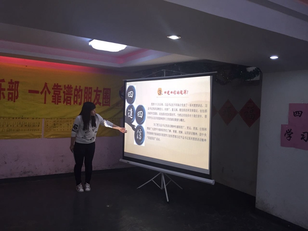接着青年汇负责人呼女士上台与大家分享了自己对于“四进四信”的理解,并结合生活谈了自己的感悟,同时提出了与志愿者们增强合作,共同学习的希望。