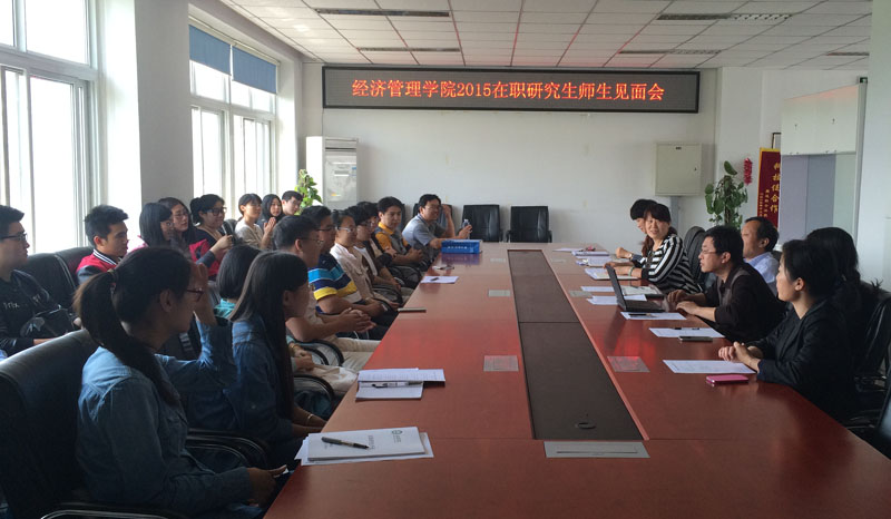 5月8日,经管学院2015级在职硕士研究生师生见面会在经管楼401举行。经管学院院长李华,党总支书记胡宝贵,副院长刘芳、赵连静、赵金芳,导师代表赵海燕老师,研究生秘书任娇老师及全体在职研究生新生出席见面会。会议由经管学院副院长刘芳主持。