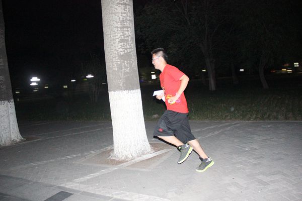 “荧光夜跑”顾名思义,同学们在起跑前戴着荧光眼镜和荧光发箍,成为北农夜晚一道亮丽的风景线。他们手里拿着活动举办方发放的荧光棒和写着地点的一张纸,分别去学校中的经管楼、游泳馆、动医院旁和教学楼之间的小花园等九个地点获得印章,在每个地点都会有相应的荧光装备,同学们只要集齐七个印章就可以回到操场进行抽奖。