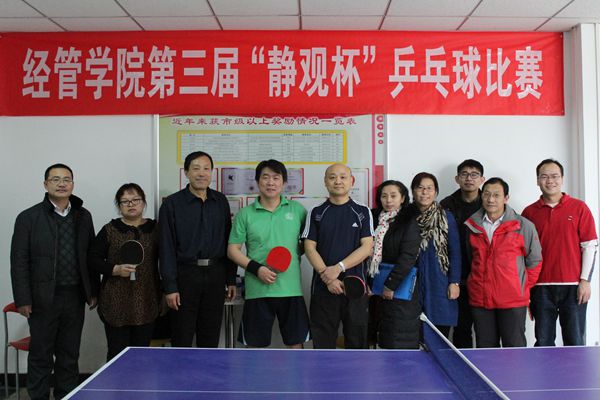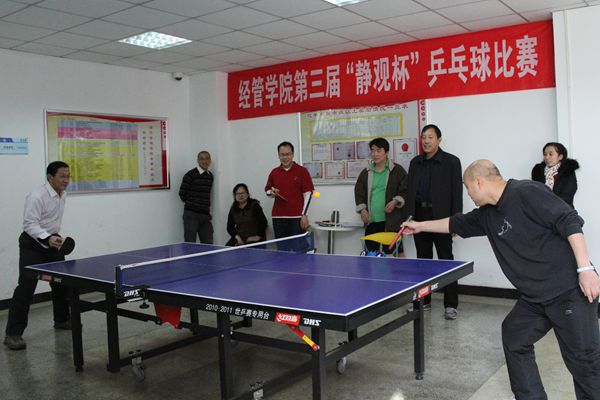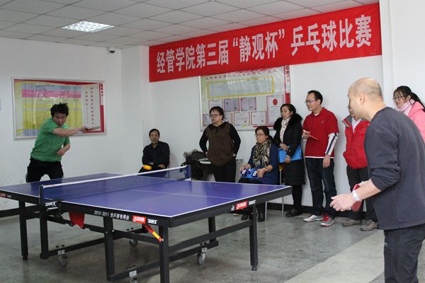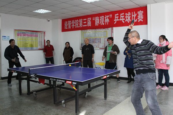 为丰富经管学院教师课余生活,调节精神,放松心情,满足众多教师体育文化生活需要,增强教师间的交流沟通和教职工的身体素质,12月16日中午,经管学院第三届“静观杯”乒乓球比赛在经管楼如火如荼地拉开了帷幕。