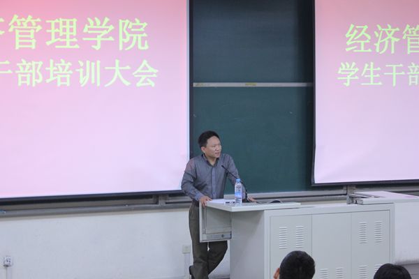 11月28日晚,在教B303,经管学院学生干部培训大会进行到了第二场。此次大会由学生处副处长刘柳老师主讲,内容是北京高校“红色1+1”示范活动的工作实践。到场的嘉宾有经管学院副院长赵金芳老师,14级辅导员闻海洋老师。