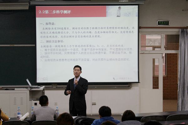 为了加强学生干部的心理素质建设,提高他们的业务能力和沟通能力,经管学院干部培训会在十一月二十九日于教B-303有序召开。本次会议有幸邀请到了贾悦老师做九种人格分析的报告。经管学院副院长赵金芳老师、14级辅导员闻海洋老师以及各位学生干部参与了本次会议。