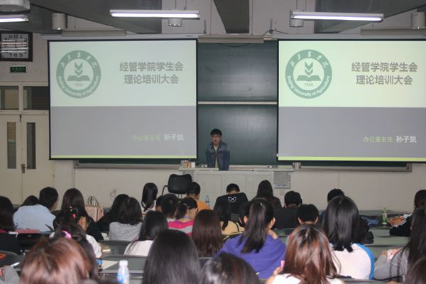为了加强学生会干事队伍建设,提高干事的思想政治素质和工作能力,明确学生会的工作任务、职责、能力,充分发挥学生会应有的作用,使各部门之间的联系加强。9月25日,经管学院在教B103召开了学生会干事理论培训大会。出席本次会议的有经管学院学生会主席贺炳林,主席团成员及各部部长和干事。办公室主任孙子凯主持了本次会议。