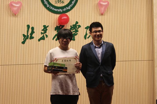 最终,陈超凡以8.7分的高分荣获第一;孙潇,杨文,王美琪荣获第二名;刘淼,王祎,欧阳秋子,梅军,张子辰,闻乐凯荣获第三名;学生会主席贺炳林给荣获第一名的同学颁奖并合影留念。其他评委们也分别给第二名第三名颁奖。