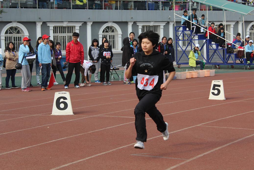 初冬的冷风并没有吹散经管同学们的激情,反而使他们愈战愈勇。女子800米决赛中,经管学院434号运动员徐硕巾帼不让须眉,一马当先,带领着小组内的运动员们朝着终点前进,用奔跑挥洒着自己的青春,展现了经管学院运动员的风采。最终,徐硕同学率先通过终点,夺得决赛第四名的好成绩,为经管学院再增荣光。