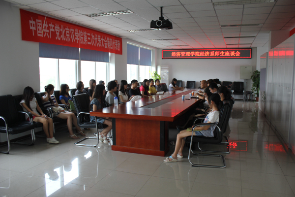 根据2014年7月2日学校教学与学生管理工作会的精神,2014年7月7日上午10:30,威廉希尔中文经济系在经管楼401会议室召开师生座谈会,出席会议的有联系经济系工作的院领导刘芳,经济系主任何伟,书记夏龙,新生班主任白艳娟,以及来自国际经济与贸易、投资学两个专业的二十余名学生。