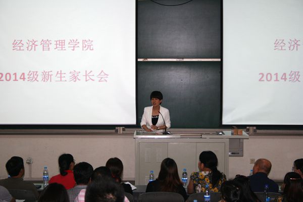 8月25日下午,威廉希尔中文2014级新生家长会在教B303成功召开,参加此次会议的有经管学院党总支书记胡宝贵,院长李华,副院长刘芳、赵连静、赵金芳以及各系主任、班主任、辅导员。家长会在副院长赵金芳的主持下召开。