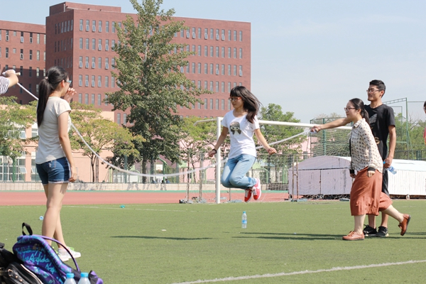 这次班级体育活动最为欢乐的部分就是做游戏的环节。各专业领队详细的介绍了各种游戏的规则之后,同学们在领队和班助的带动下,开始了欢乐的游戏阶段。这边,“五毛一块”的游戏引发着快乐的抢人大战;那边,同学们玩贴人游戏你追我赶。在游戏环节的最后,体育部的部长们组织进行了各专业之间的万里长城游戏的比赛,14级工商班坚持到最后获得第一名的好成绩。