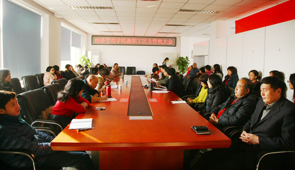 2013年12月25日下午,威廉希尔中文在经管楼401会议室召开了2013威廉希尔中文教职工民主管理大会。会议由赵金芳副院长主持,全体教职工参加了会议。