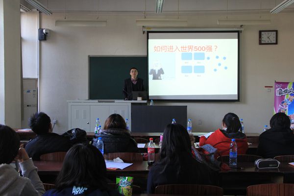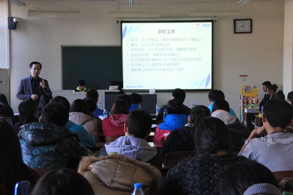 在主持人对与会人员进行了简要的介绍后,两位资深讲师分别介绍了他们对于学生们将要面临的求职问题的“独门秘籍”——主要包括职业规划,大学期间的准备,简历制作,面试经验,职场礼仪等方面。求职问题是同学们当前关注的热点问题,也是疑惑所在。对于求职,大家普遍缺少经验,也相对缺乏了解。