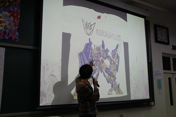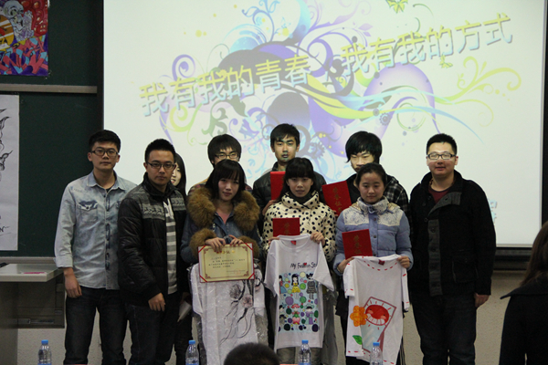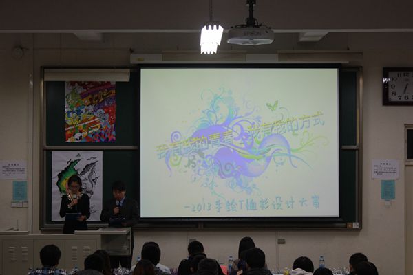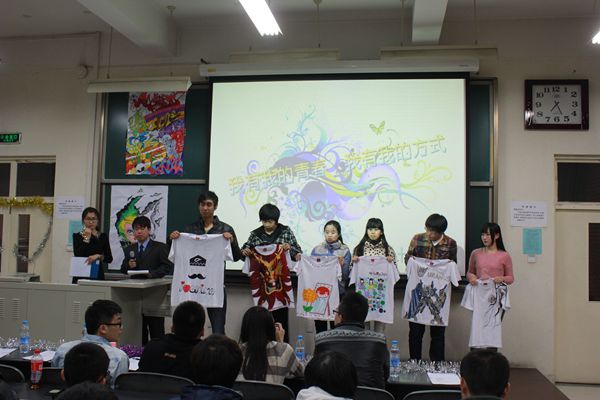为丰富同学们的大学生活,提高大学生的艺术欣赏力和创造力,经管学院学生会宣传部举办了面向全校广大学生的手绘T恤设计大赛。2013年12月1日晚,选手们在教B101迎来了本次比赛的决赛时刻。出席本次比赛的评委有经管学院学生会主席张乐乙,副主席程杰鑫、郁娇、孙轩,以及来自各个专业的嘉宾评审。