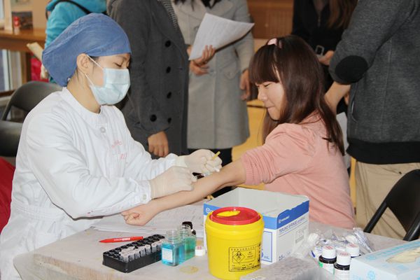 经过填表、体检、验血等一系列的程序后,检验合格的同学们开始了献血的过程,许多志愿者表示:这是第一次参加献血活动,稍微有点紧张,但是一想到自己的血液将在别人的身体里为他们延续生命就不会害怕。12级的芦鹿燕同学虽身材娇小,可献血的决心并不小,在医生的担心她不能够献血的时候,积极的她专程去校医院开示身体状况证明,最终成功献血。当然,检验不合格的同学也不免遗憾。11级的郭帅同学曾多次参加献血活动,但这次由于身体原因却未能如愿,略感遗憾的他同样期待下一次的活动,希望能够点燃生命之火,让爱心在你我血脉流动。